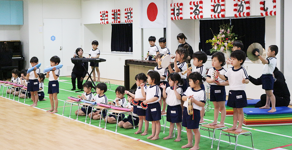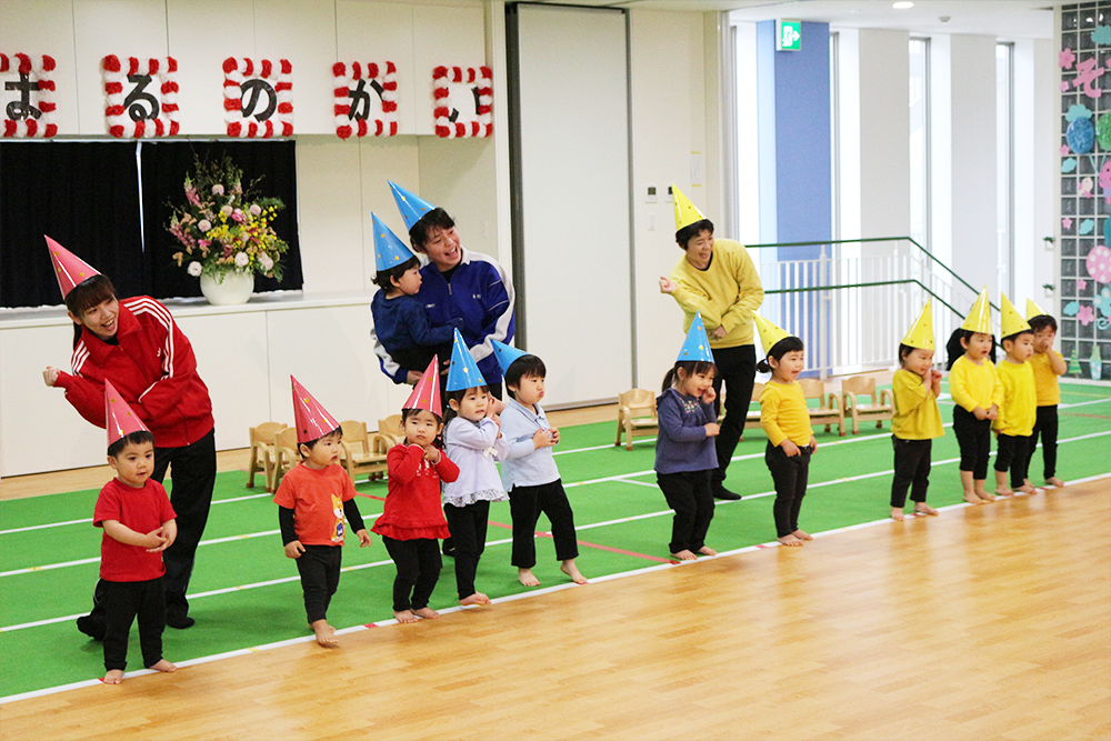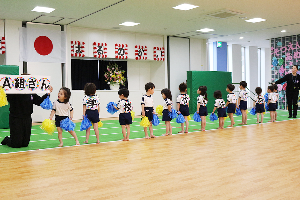 大岡はるかぜ保育園の初めてのはるのかいです。はるのかい開催に合わせてA組の2名の卒園をみんなでお祝いしました。新型コロナウイルスの流行が終息を見せていないためクラス毎の発表となりましたが、保護者の方々並びに近隣の方々のご理解とご協力のお陰様で無事開催することが出来ました。この場をお借りして御礼申し上げます。子どもたちのかわいい演技や日々の練習の成果を一部ではありますがご紹介いたします。