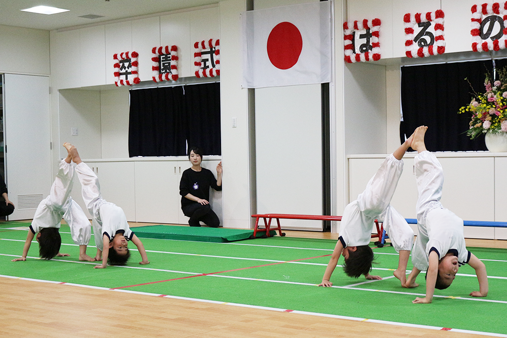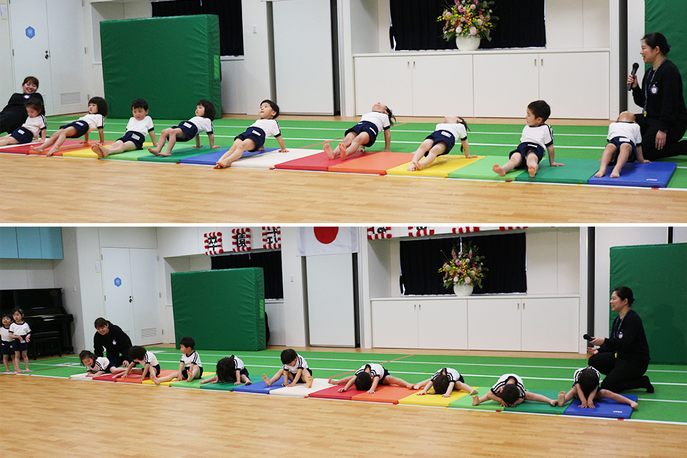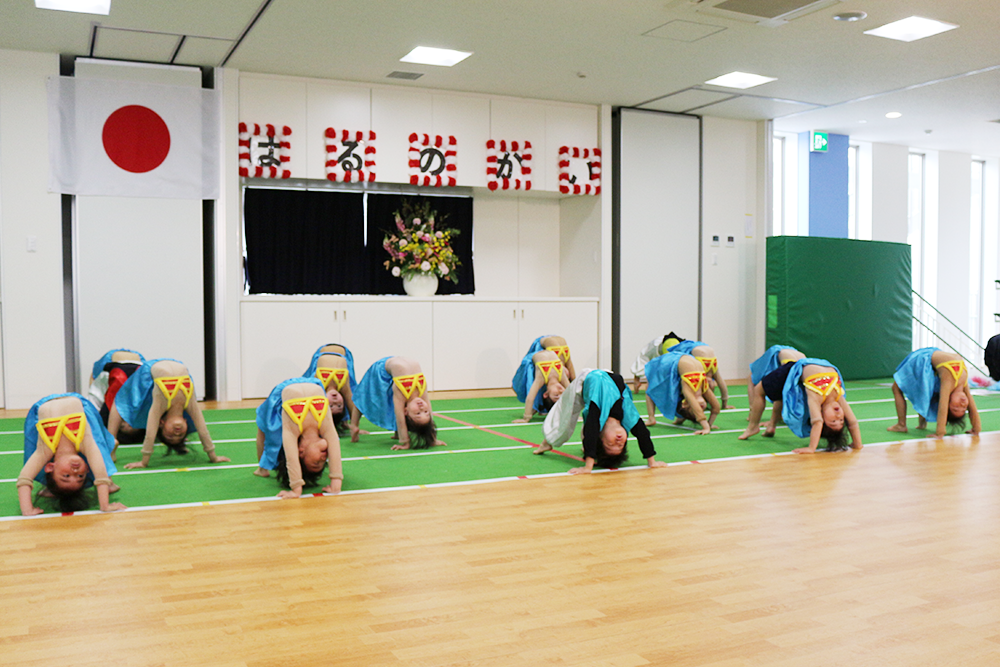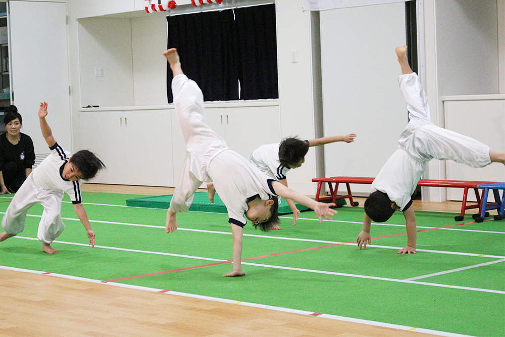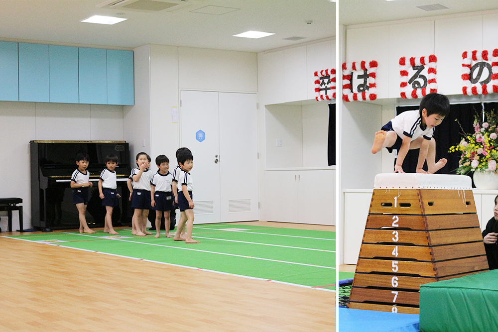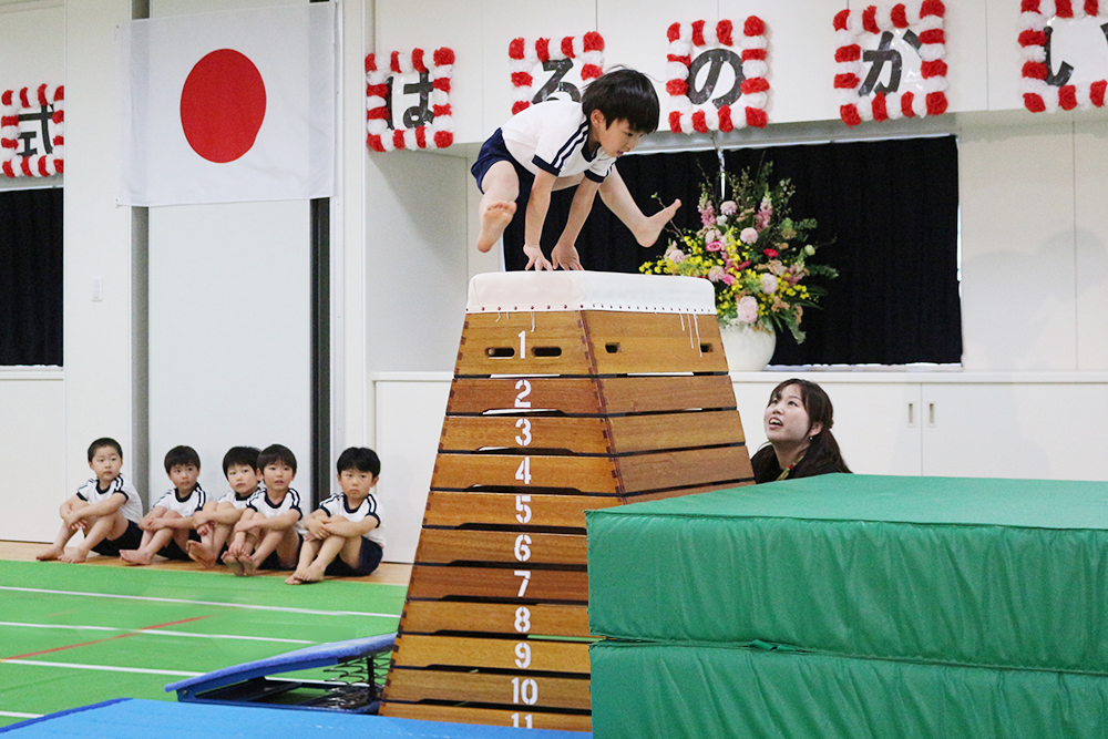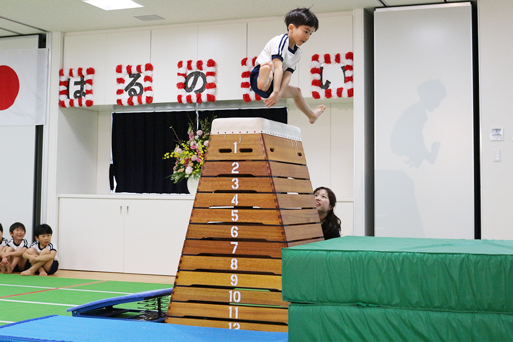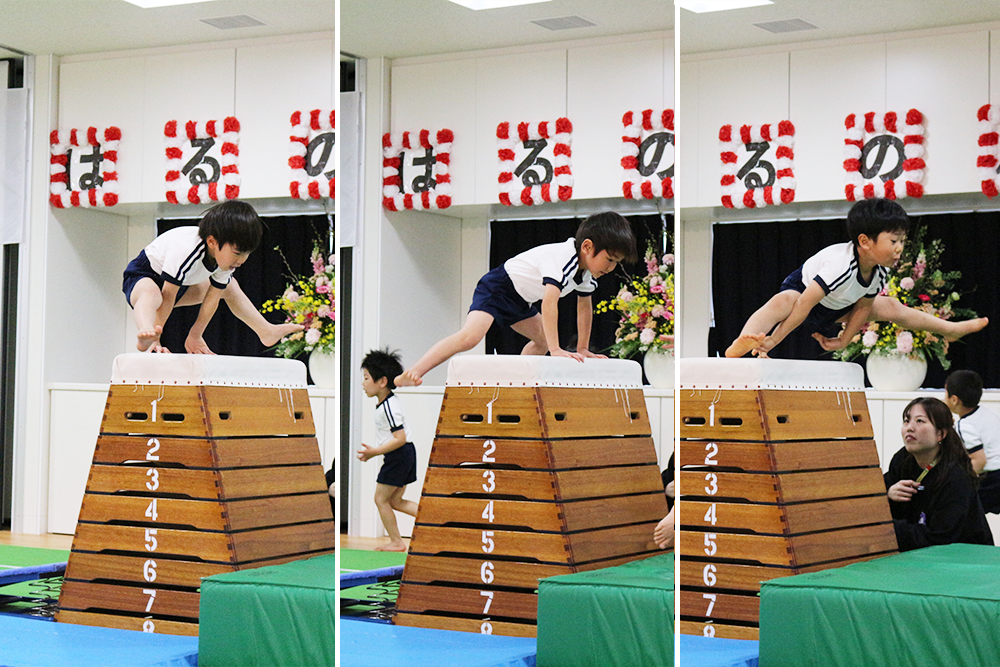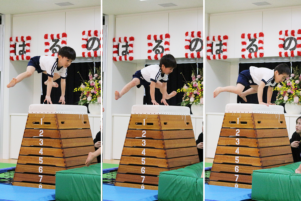 スターウォーズのジェダイの戦士に扮して日々練習してきた体操を披露してくれました。ダースベイダーによって暗黒面に落ちた仲間を助けるために立ち上がります。最後に挑戦した跳び箱では、昨日まで飛べなかった段数に挑戦して見事に大成功!