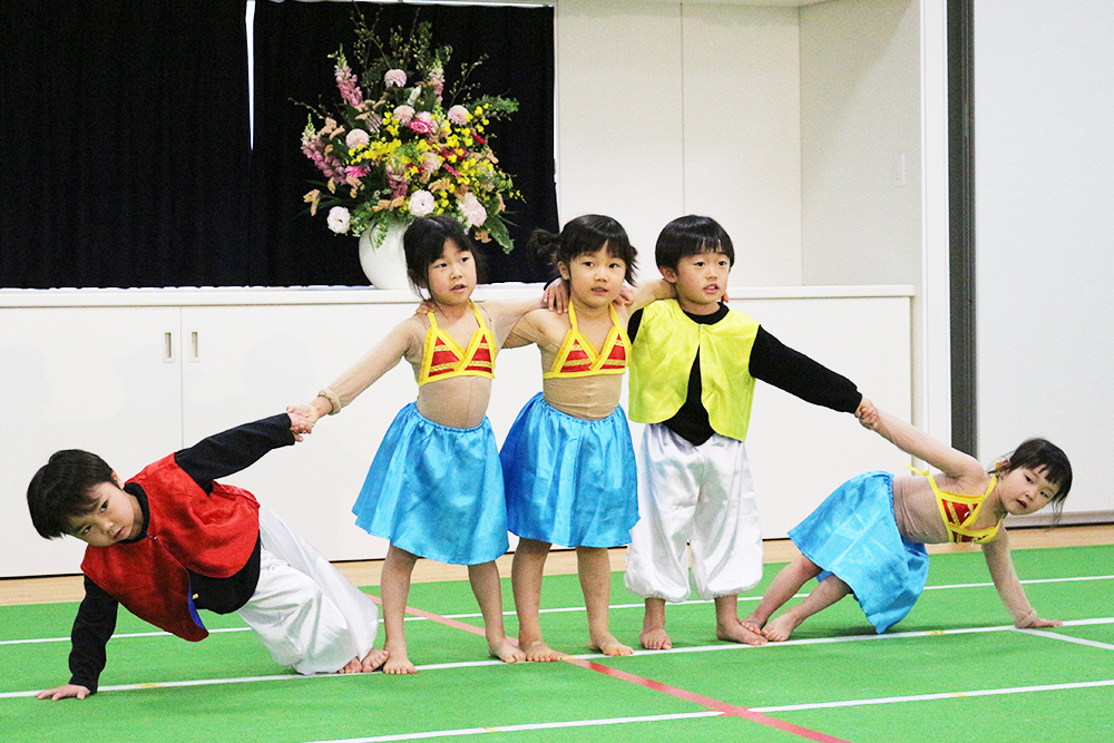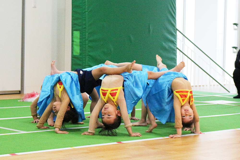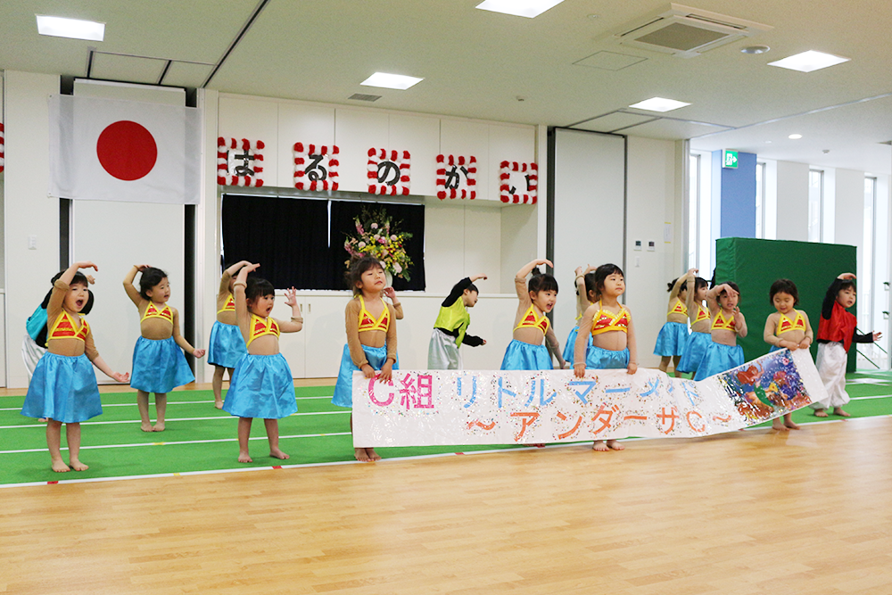 いつも元気で笑いの絶えないC組さん!リトルマーメイドのリズムに乗せて毎日練習してきた体操を披露してくれました。かわいい衣装に会場が笑顔に包まれました。